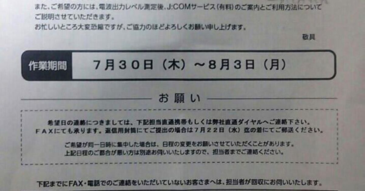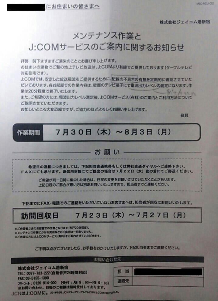 . マンション暮しあれこれーJCOM 解約金を0円に!J:COMをサクッと解約する方法を紹介 のこ助さん בטוויטר: "Jcomからお詫び手紙きた。 具体的にどうとか全くなし。不信感増し増し。 電話とネットは変えれてもテレビはマンション 引っ越すか自分でアンテナ建てるしかないな。 #jcom #JCOM… "